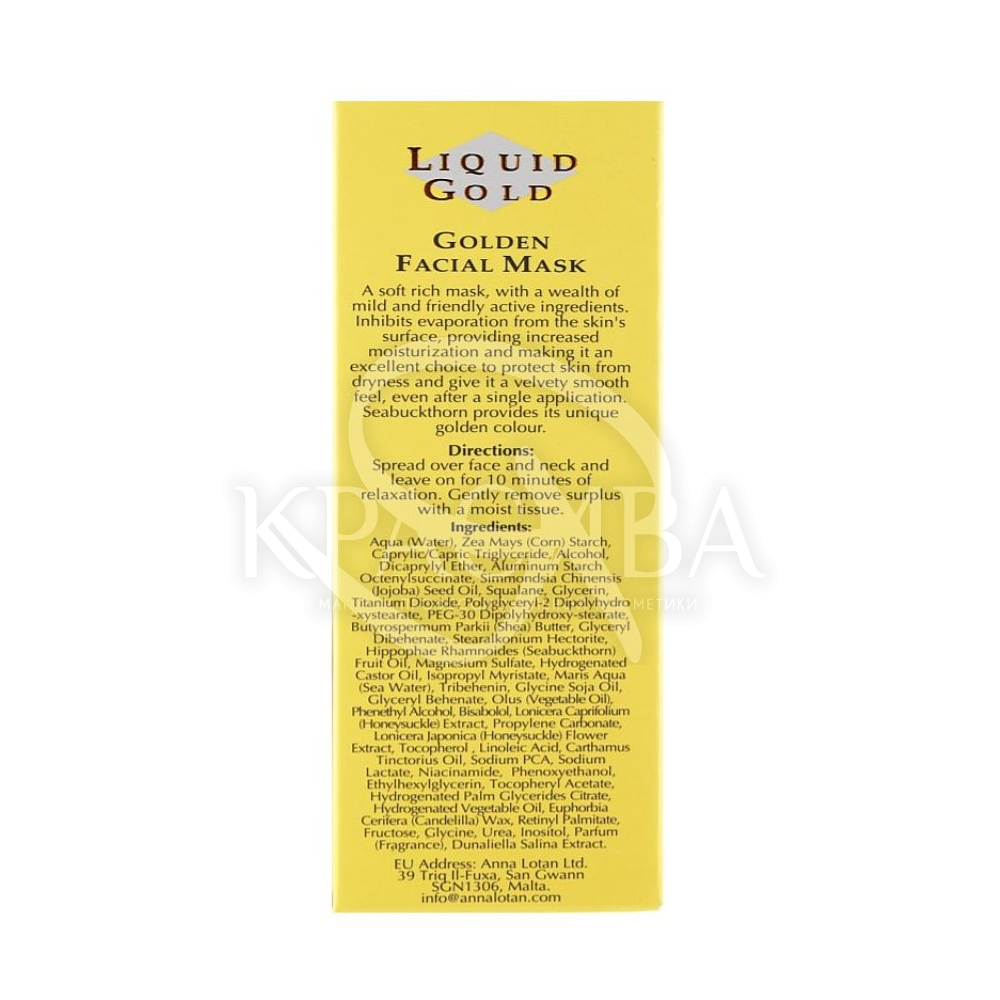 Описание: Мягкая кремовая маска Liquid Gold богата облепиховым маслом, витаминами и жирными кислотами, интенсивно насыщающими кожу влагой и способствующими ее длительному удерживанию в клетках. Восстанавливает упругость и эластичность кожи.