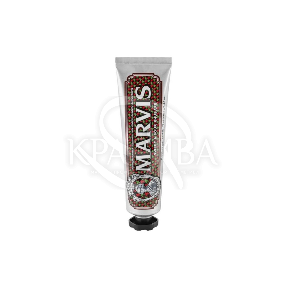 Marvis Sweet & Sour Rhubarb – перенесет тебя в детство, в момент, когда ты маленький мокал румбарбар в сахар и ел его, не думая ни о чем. Приятный кисло-сладкий вкус, освежающий.